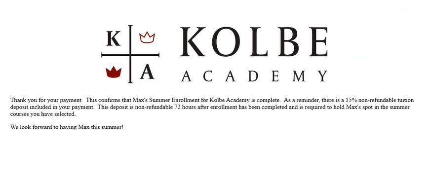 7. Once your student's summer registration is processed, the summer courses will populate in the student's Registration Tab of your Kolbe Portal account: